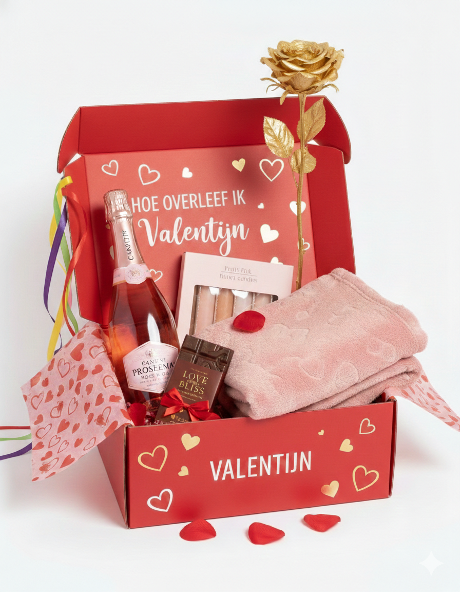 Ons "Hoe Overleef Ik Valentijnsdag" pakket is speciaal samengesteld voor koppels of voor de single die dit jaar kiest voor échte aandacht en luxe.
